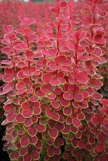 Polska odmiana wyhodowana w Szkółkach Kurowscy. ‘Orange Sunrise’ jest silnie rosnącym, kolumnowym krzewem. Dorasta do około 1,5 m wysokości. Pędy są wyprostowane. Młode pędy są intensywnie pomarańczowo-czerwone. Liście są czerwone, duże, zaokrąglone, gęsto osadzone na pędach. Na starszych liściach pojawia się dekoracyjna, złota obwódka, do 2 mm szerokości. Młode pędy i liście są wyraźnie jaśniejsze, z żółtawym odcieniem.