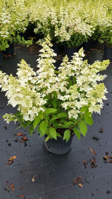 Hydrangea paniculata Confetti ma kwiatostany lekkie niczym konfetti. Są pachnące, bardzo dekoracyjne i wysokie do 30 cm. Mają wydłużony, stożkowy kształt. Składają się z dużych kwiatów płonnych i drobniutkich kwiatów płodnych – ta kombinacja zdecydowanie dodaje im uroku. Kwiaty pojawiają się od lipca do września na jednorocznych pędach. Początkowo są kremowe, z czasem stają się czysto białe z delikatnym, różowym rumieńcem. Jasne, duże kwiatostany pięknie kontrastuja z ciemnozielonymi liśćmi.